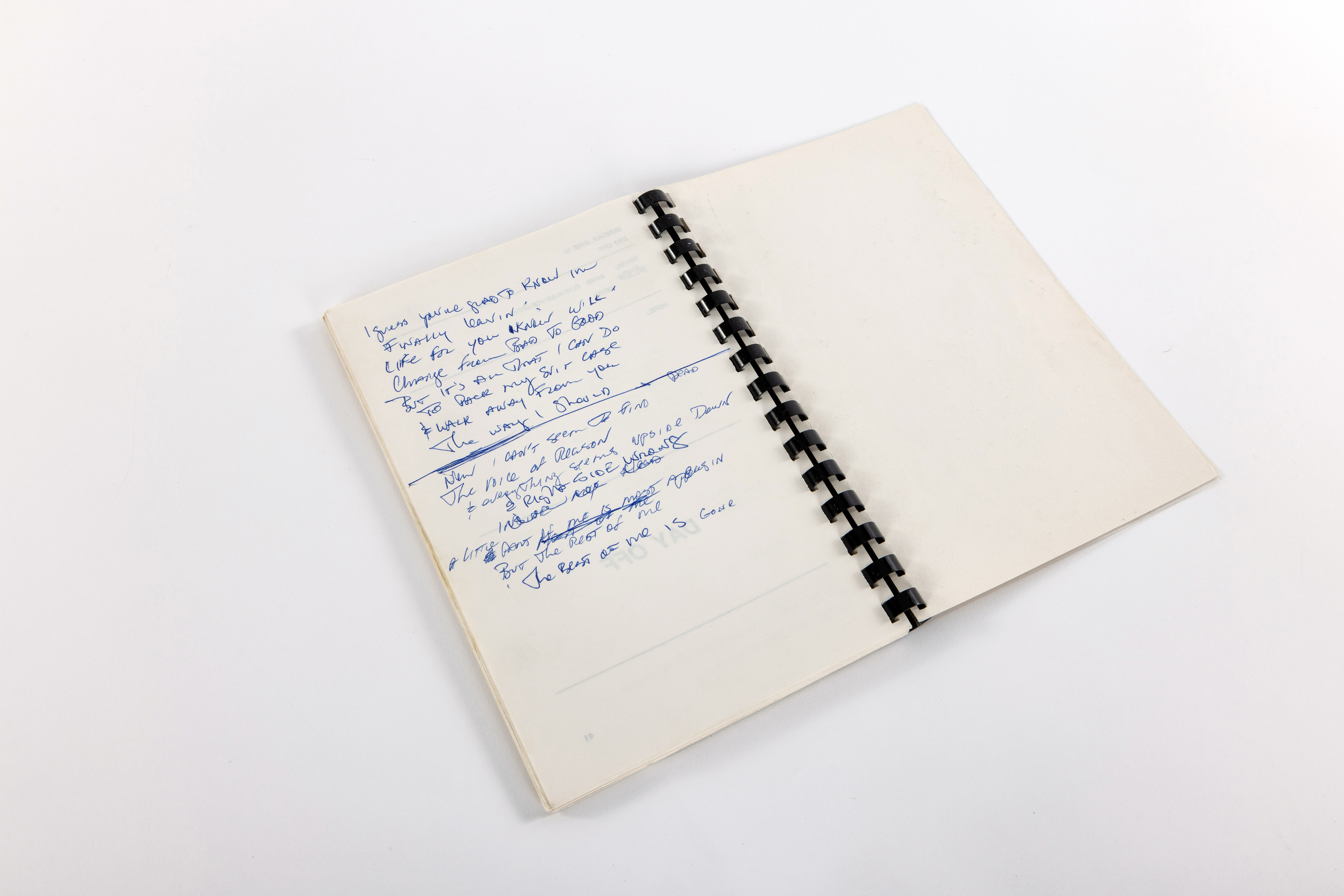 “Like the Rain” LyricsThis is a draft of handwritten lyrics by Black for his chart-topping 1996 single “Like the Rain.” Black co-wrote the song with his friend and longtime bandmate, guitarist Hayden Nicholas.