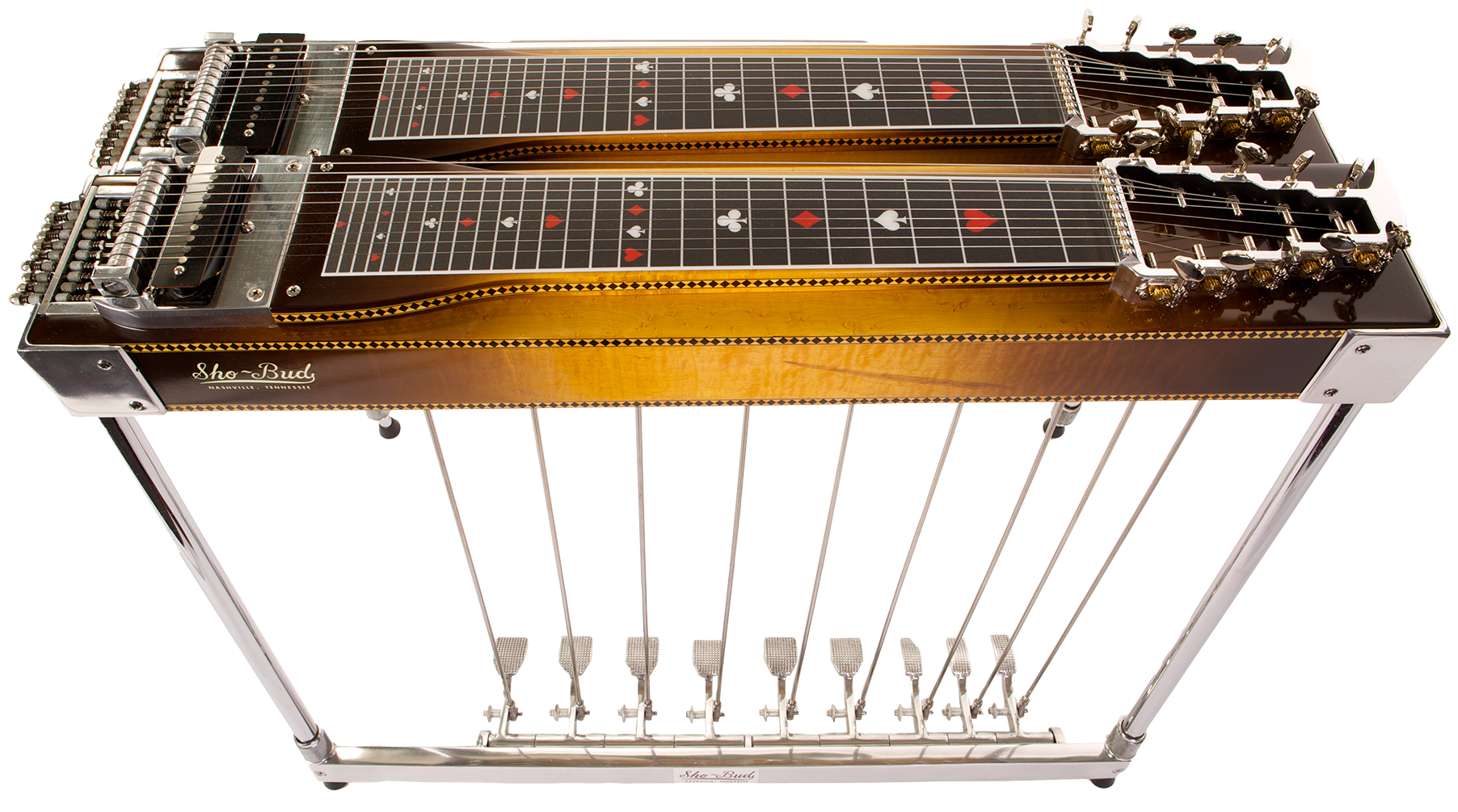 Lloyd Green used this 1967 Sho-Bud Fingertip pedal steel guitar on thousands of sessions, including those for the Byrds’ album Sweetheart of the Rodeo and for recordings by Bob Dylan, Tammy Wynette, Charley Pride, Johnny Paycheck, Michael Nesmith, and many others. Courtesy of Gary Boyd
