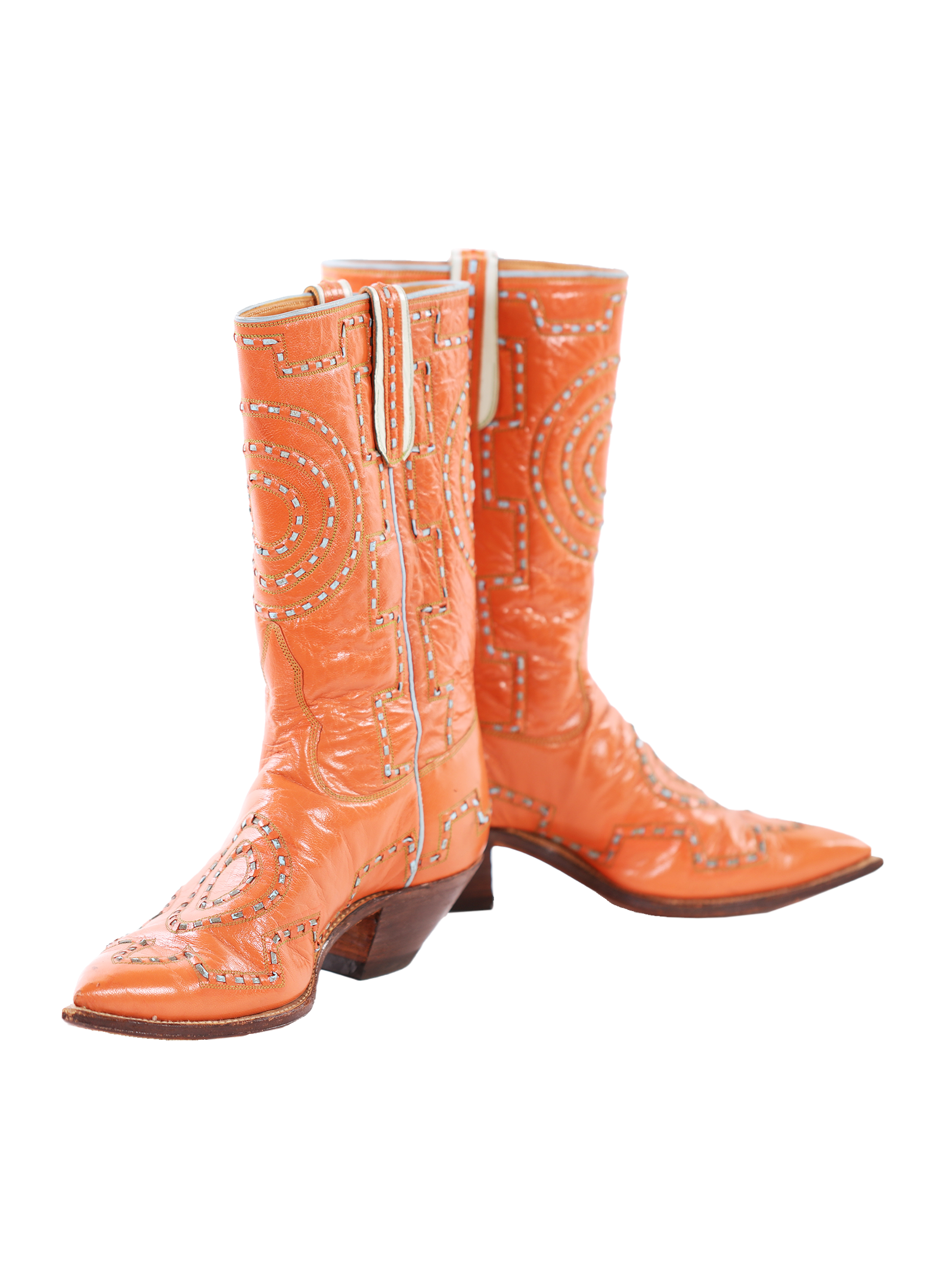 Nudie’s Rodeo Tailors carried “everything for the horse and rider,” including this Navajo-style tapestry and these hand-tooled boots.