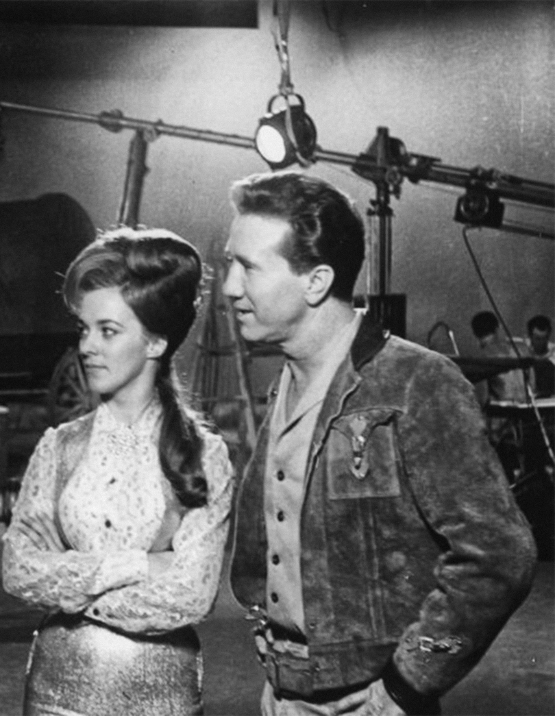 Connie Smith and Marty Robbins on the set of his TV series, The Drifter, c. 1965.