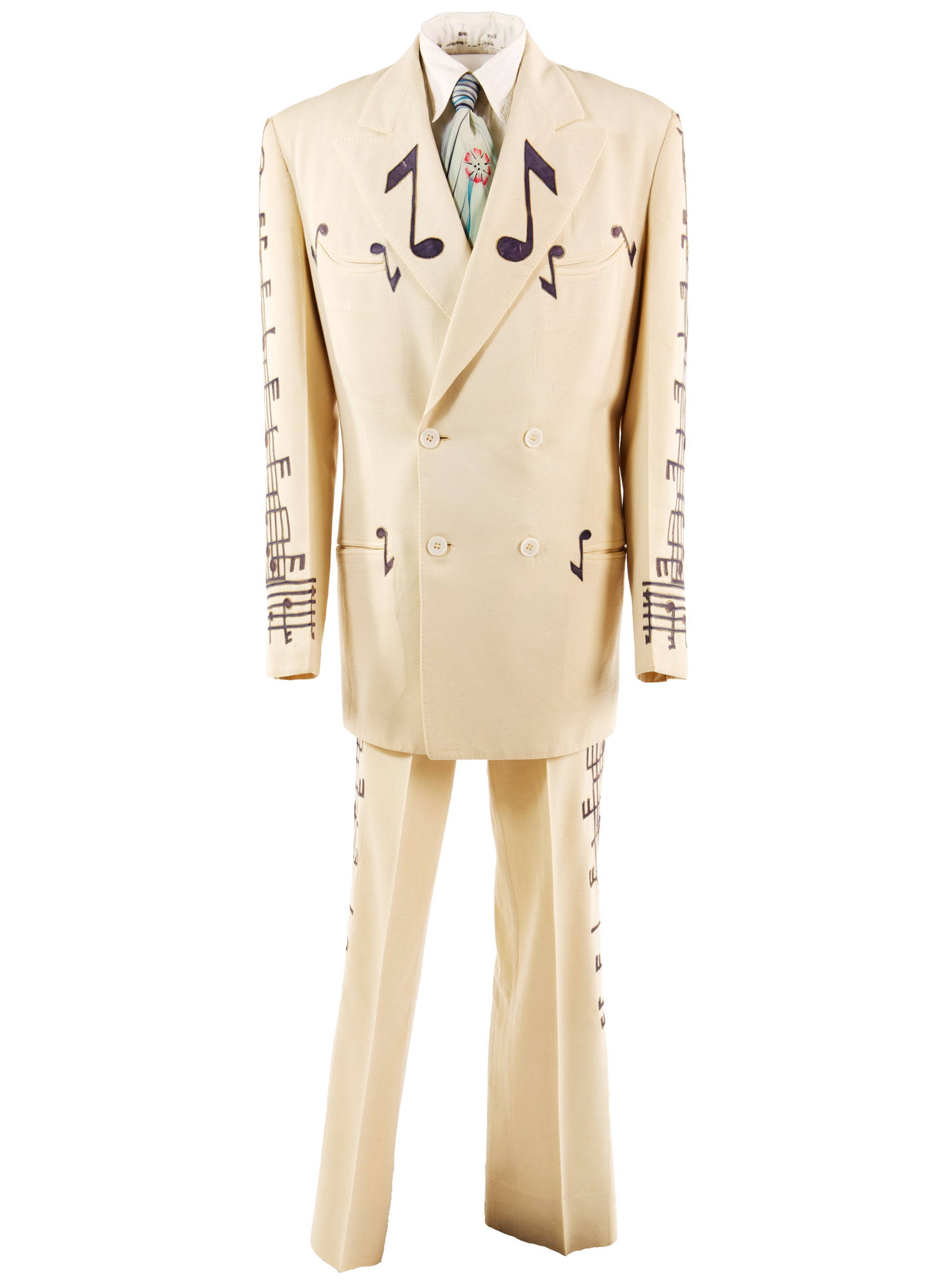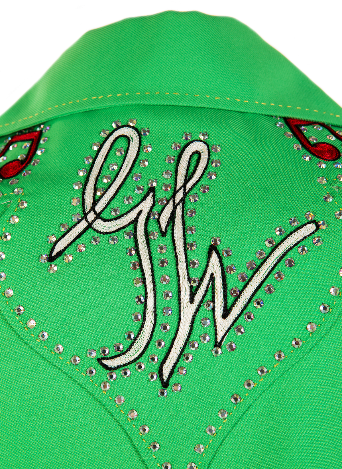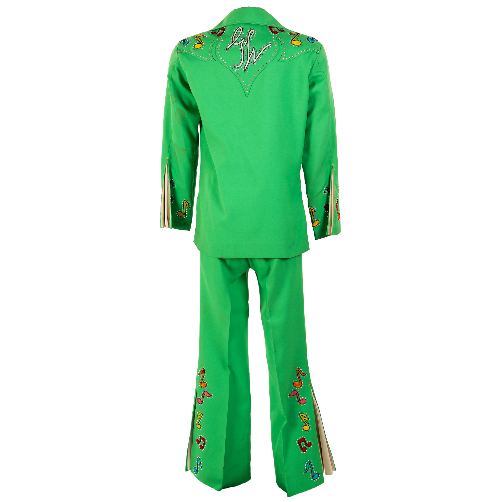Texas honky-tonk singer Gene Watson wore this Nudie suit, with embroidered musical notes and his initials on the back, in the 1970s.