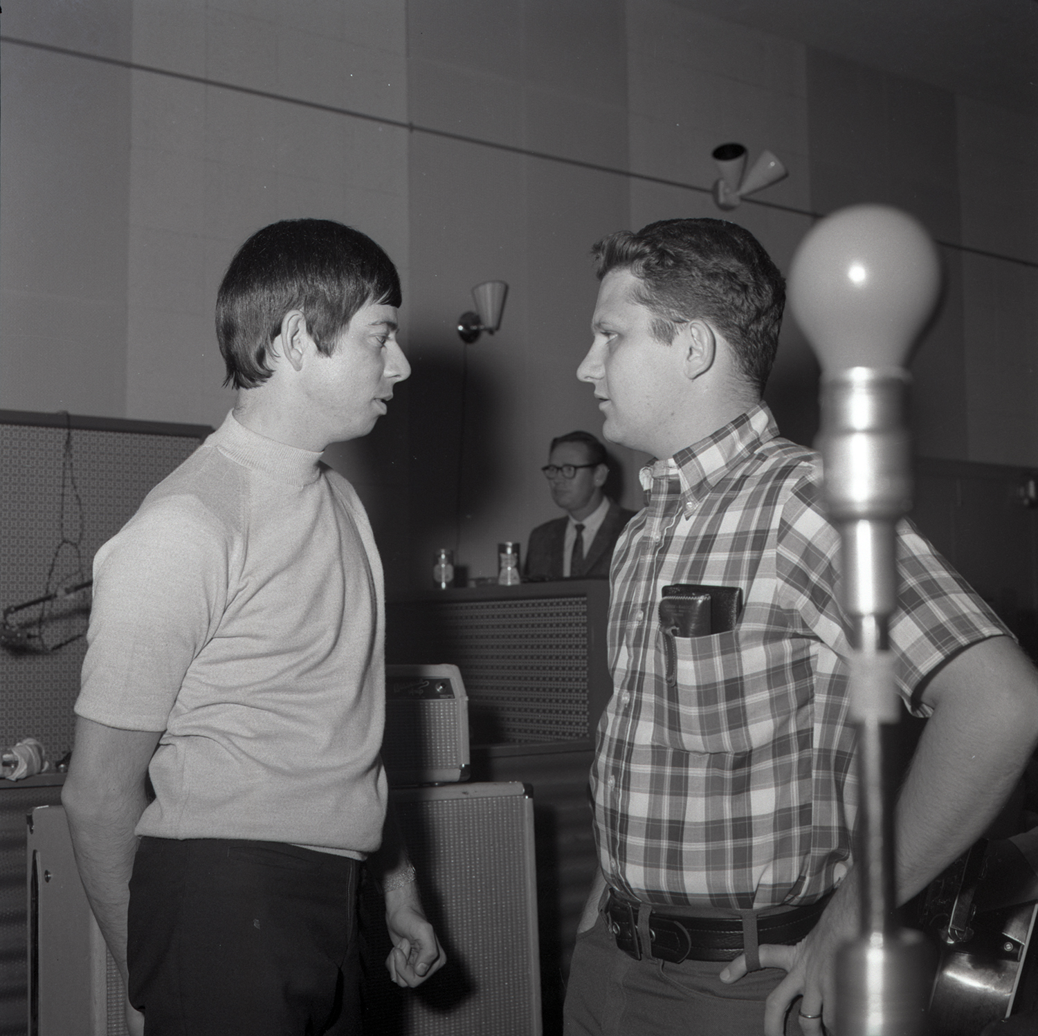 Charlie McCoy (right) and Bobby Goldsboro during a recording session at RCA Studio B, c. 1960s.