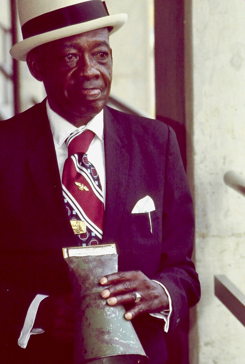 DeFord Bailey with a harmonica and a megaphone, c. 1980. Courtesy of David C. Morton.