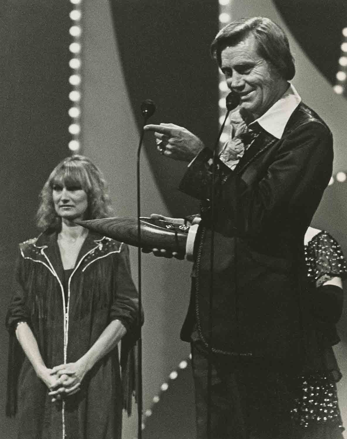 George Jones and Barbara Mandrell perform together at the Country Music Association Awards, 1981.