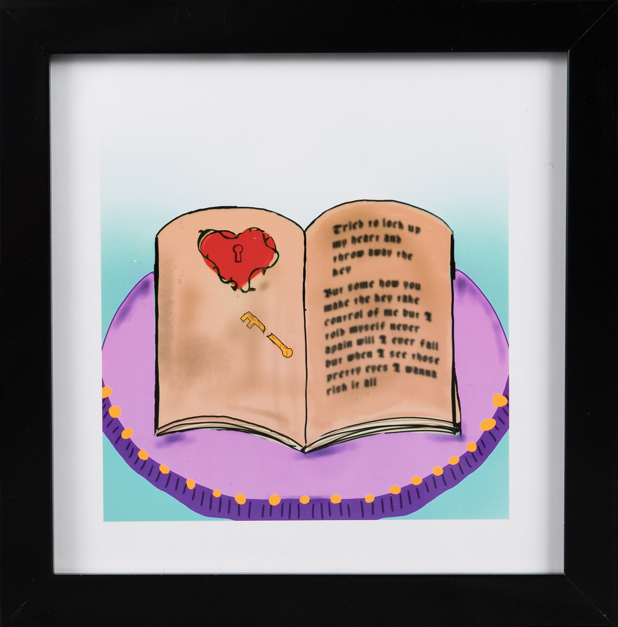 I made digital art with Ibis Paint and a Logitech Digital pen. The line that inspired me was, “I was trying to lock up my heart and throw away the key but somehow you take control of me.” My artwork is about trying to close a chapter in life, but someone opens it back up.