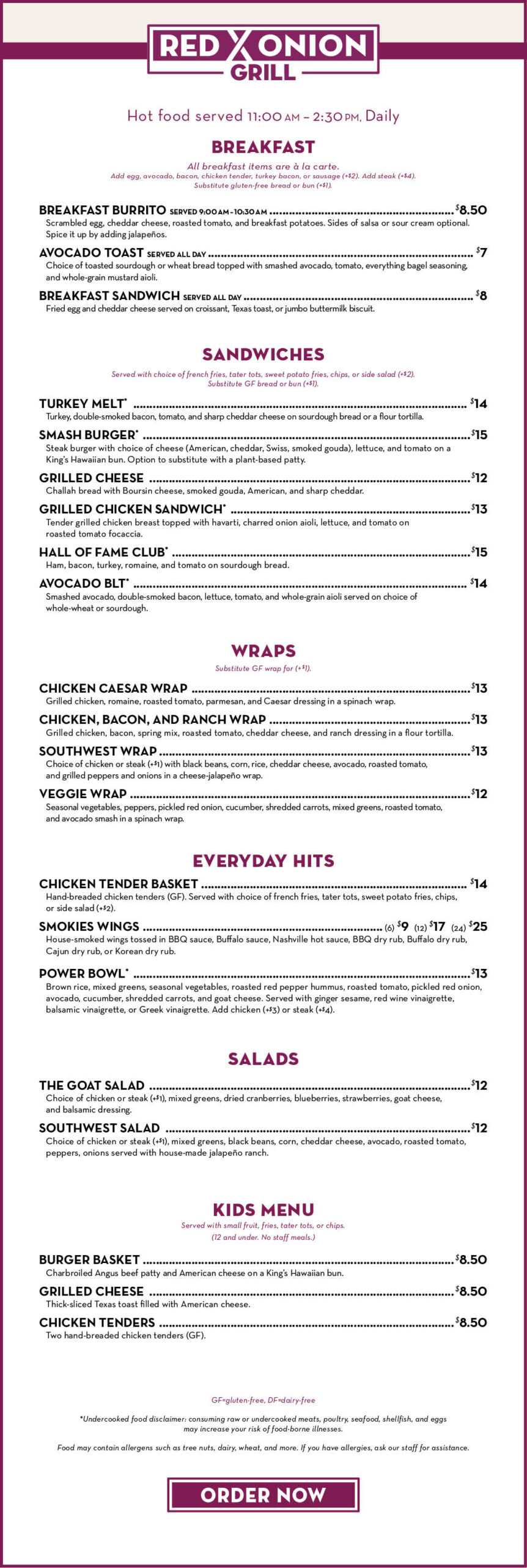 Red Onion Grill Menu