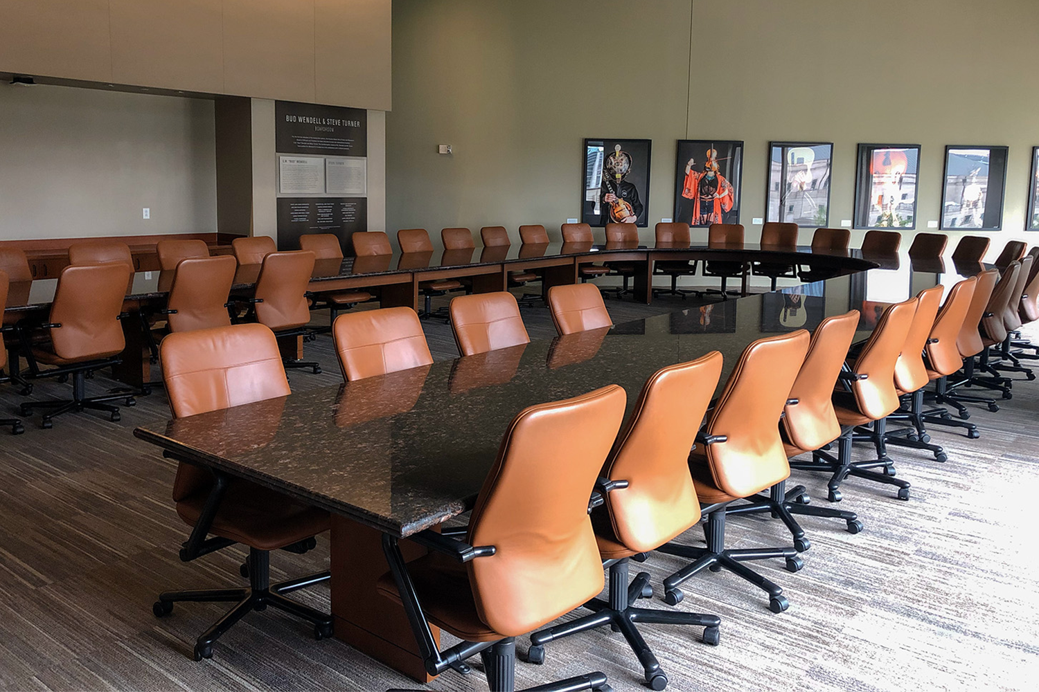 The Conservatory is a symbolic part of the narrative architecture of our building, representing the “front porch” origins of country music. Center-cut yellow pine floors create the foundation of the space and locally-sourced Crab Orchard stone lines the walls, supporting a cascading water feature— making this a striking space for evening events.