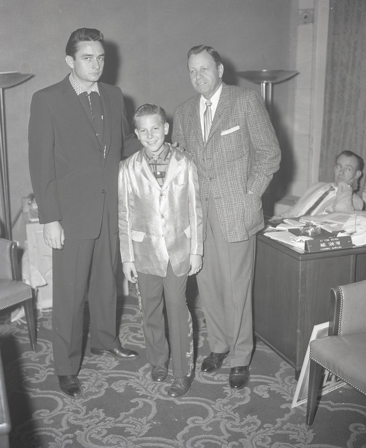 Johnny Cash, Hank Williams Jr., and Jimmie Davis, 1958. Photo by Elmer Williams.
