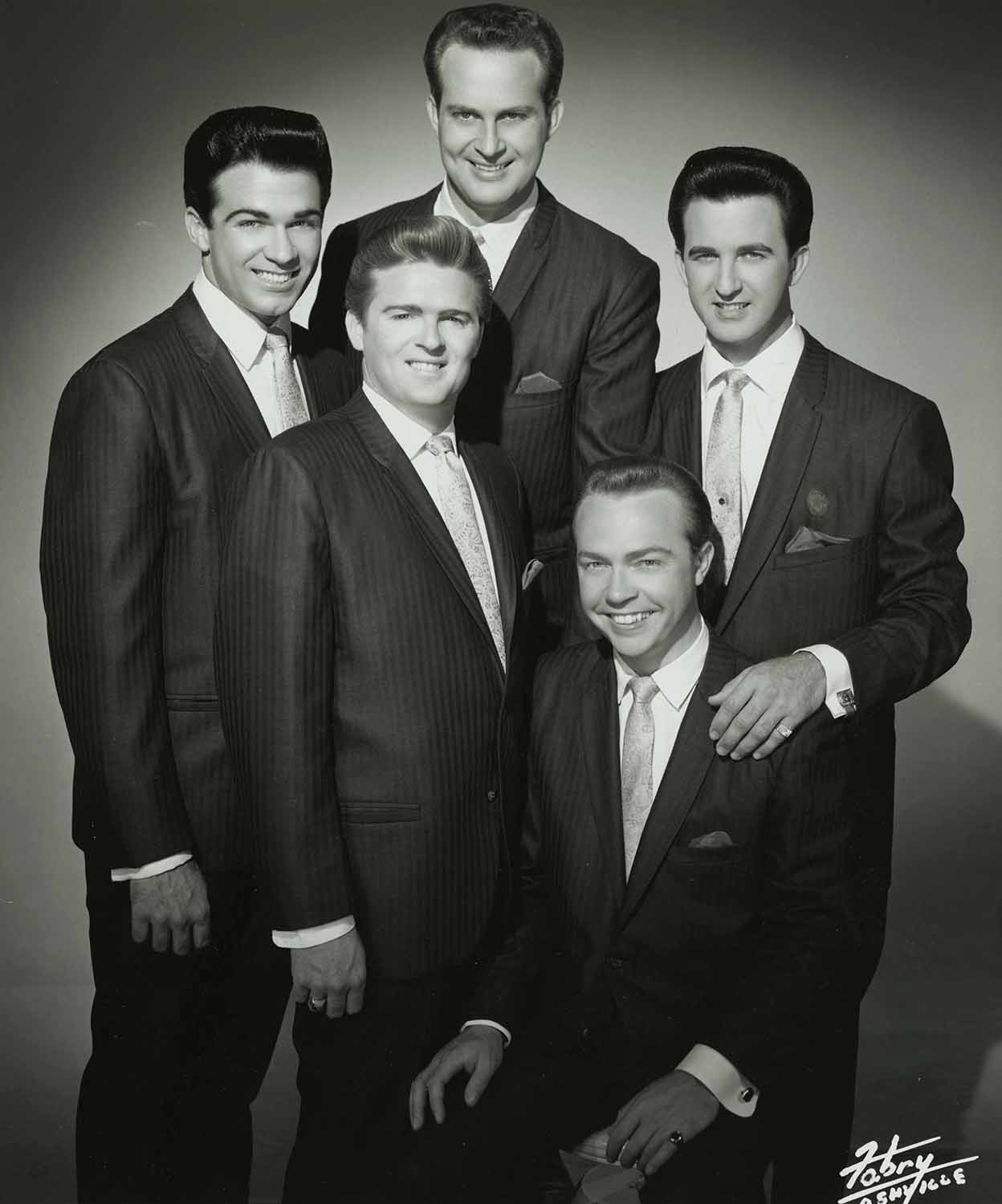 The Oak Ridge Boys, 1960s. From left: William Lee Golden, Willie Wynn, Herman Harper, Tommy Fairchild, and Duane Allen. Photo by Walden S. Fabry.