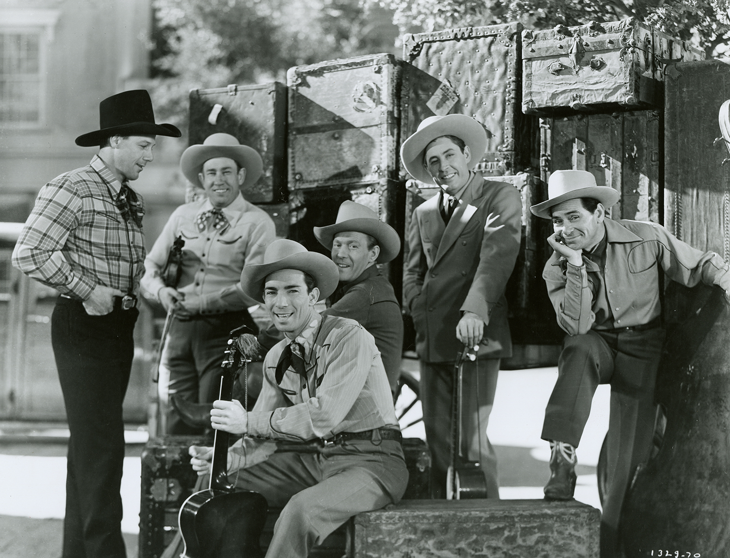 Sons of the Pioneers with musical instruments and luggage, c. 1940s.
