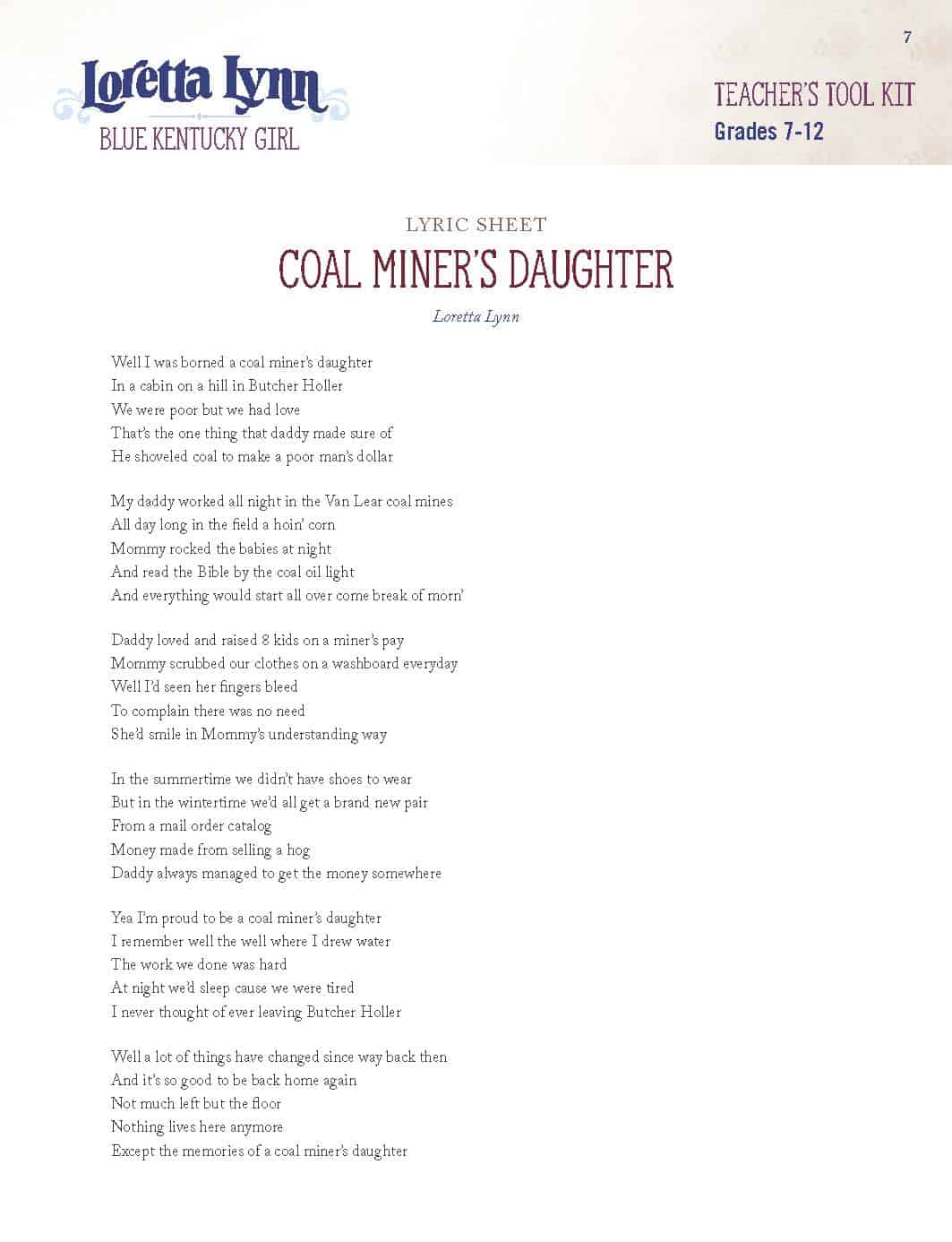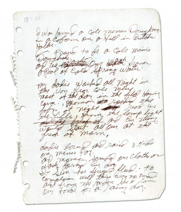 Lynn’s original manuscript for “Coal Miner’s Daughter.” -