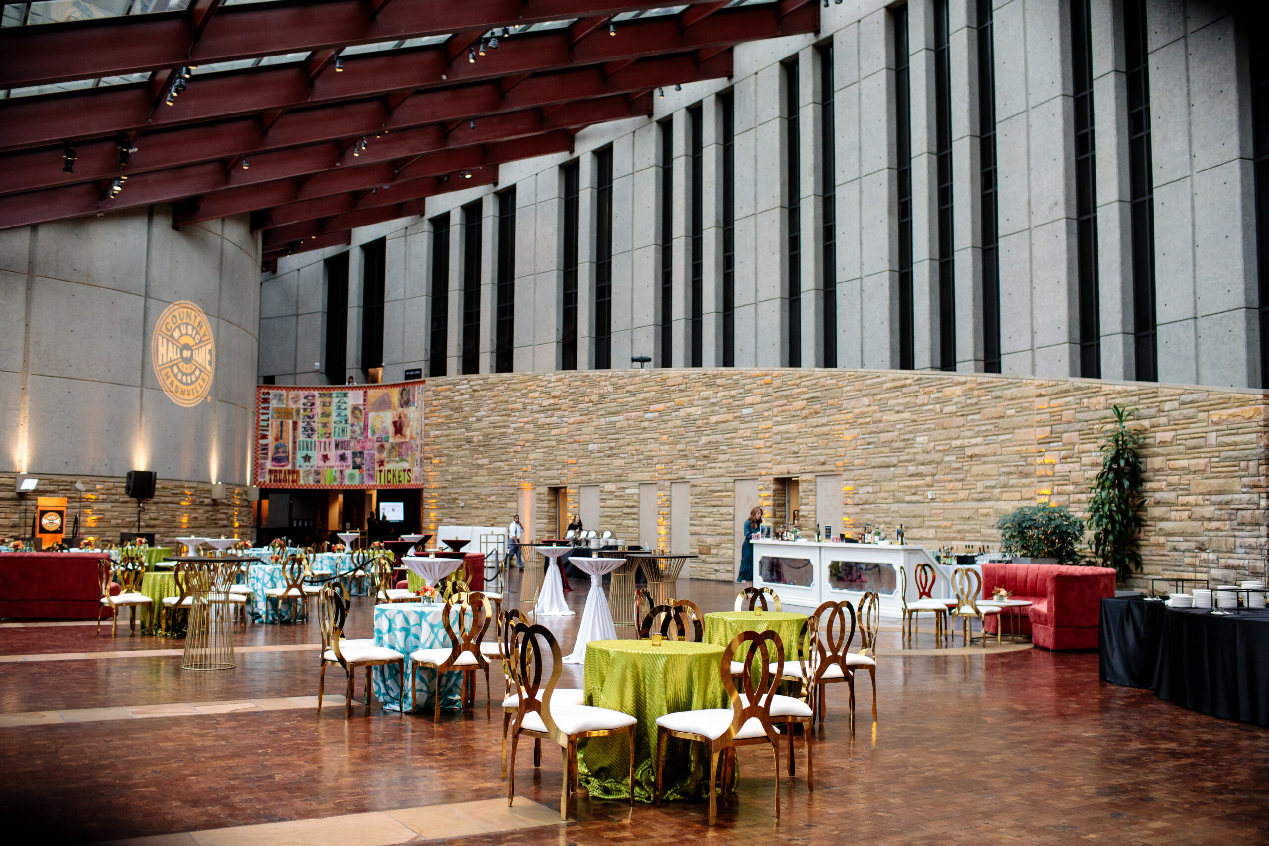 The Mike Curb Conservatory event venue opens to the Nashville sky and was designed to symbolize the “front porch” origins of country music and to function as a welcoming place for guests to assemble. The architects drew inspiration for its heavy steel frame from railroads and bridges, which connected small towns where country music came to life. Guests can relax as they listen to the water gently cascading along the Grand Staircase. Just off the Conservatory, the tree-lined Curb Records Courtyard event space can be tented and dramatically lit for more intimate gatherings or corporate events.